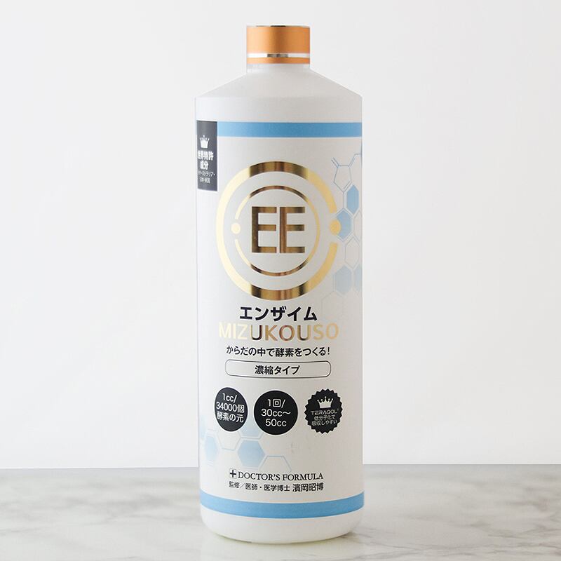 MIZUKOUSOを摂取し、体内の有機物(唾液、消化液、体内菌、バクテリア、ウイルス)に接すると、瞬時にそれらの有機物の形態を同化し、アミノ酸類に変化させる力を持っています。さらに、そのアミノ酸類は多糖類に変化し、個人が必要とする酵素に成長すると考えられています。